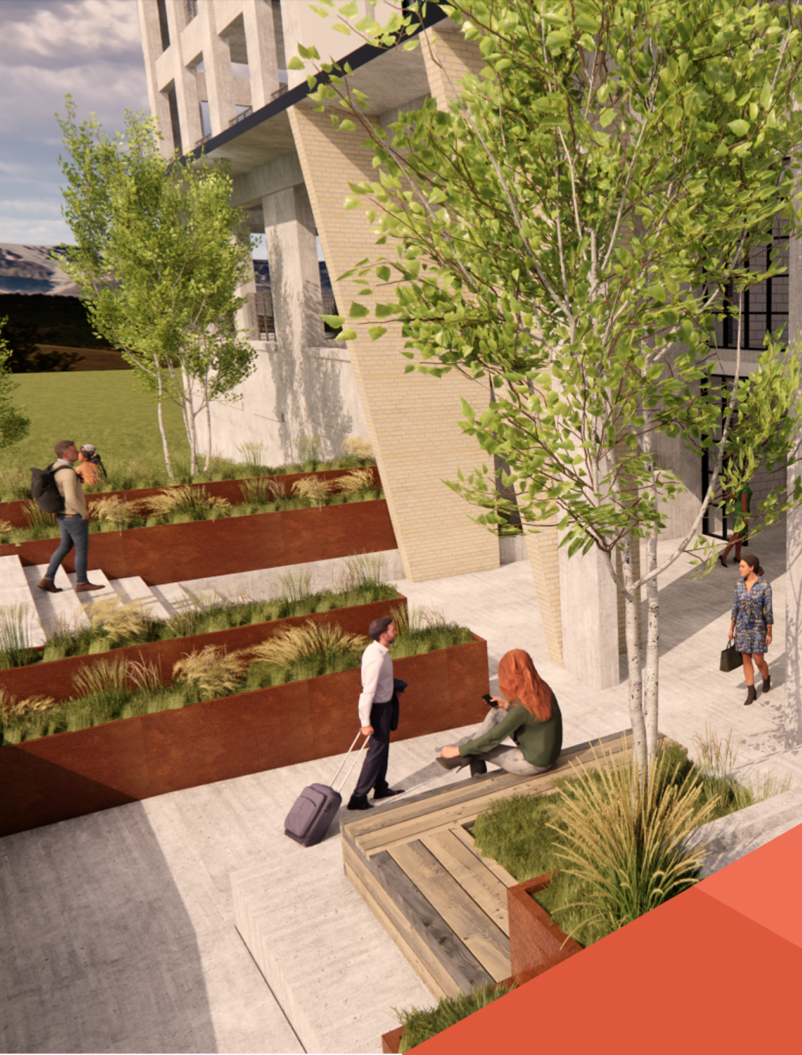 • Direct pedestrian connections from Jackson Street to 8th Street, enhancing walkability and cross-site movement